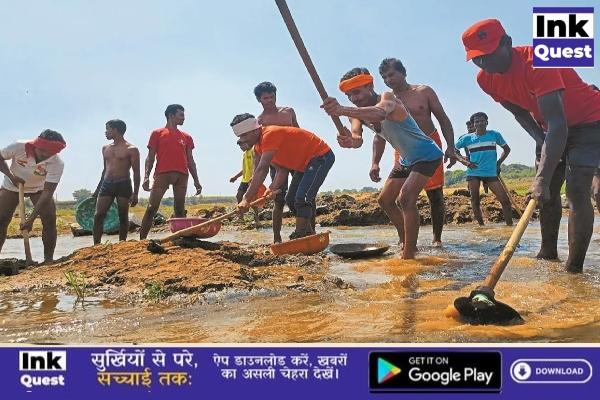 Farmers of 22 villages used shovels in the Indravati river and brought water to the Indravati river
