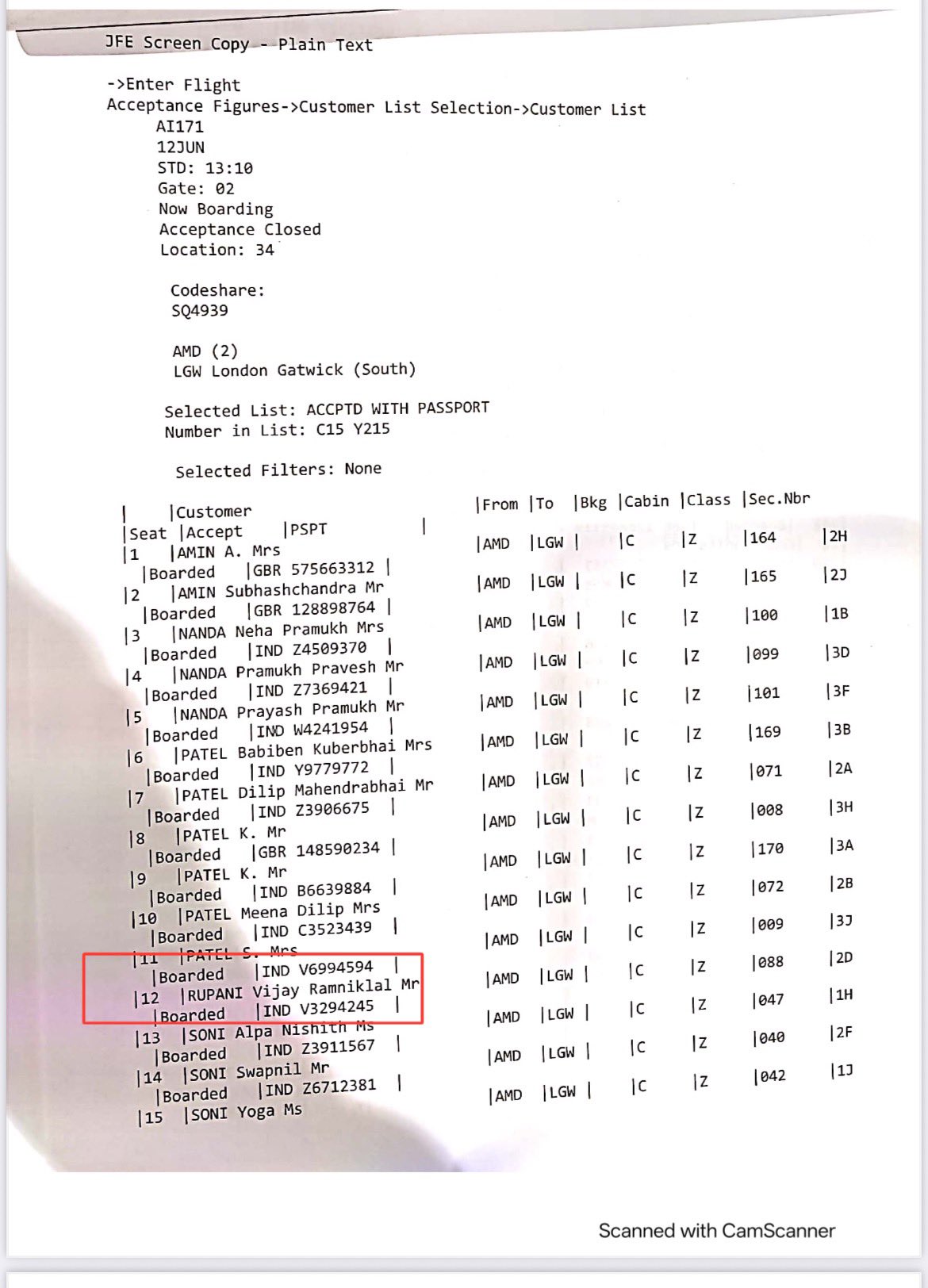इस दुर्भाग्यपूर्ण विमान की घटना में गुजरात के पूर्व सीएम विजय रुपाणी (68) भी सवार थे। वह विमान की सीट 2D पर बैठे थे और लंदन में अपनी बेटी से मिलने जा रहे थे। बता दें कि, रुपाणी जी की दो संतानें हैं। एक बेटा ऋषभ और बेटी राधिका। उनके एक बेटे, पूजित, की पहले ही एक दुर्घटना में मृत्यु हो चुकी थी। उनकी पत्नी का नाम अंजलि रुपाणी है।