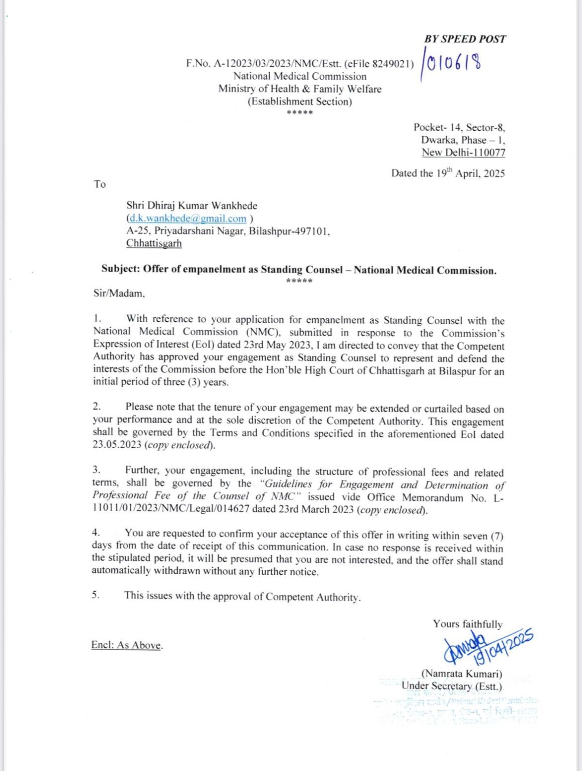 Big news High Court advocates Jitendra Nath Nandu and Dheeraj Wankhede appointed as Standing Council of National Medical Commission