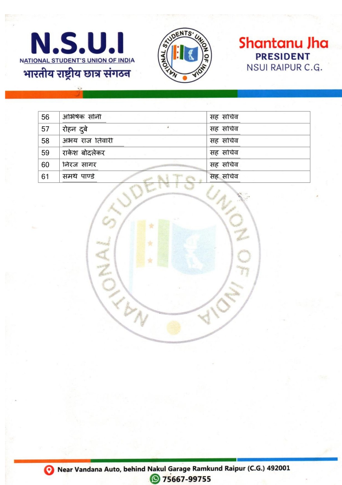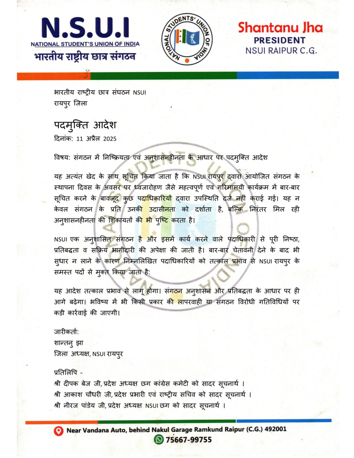 CG Politics Chhattisgarh NSUI removed 61 officers issued show cause notice to 16