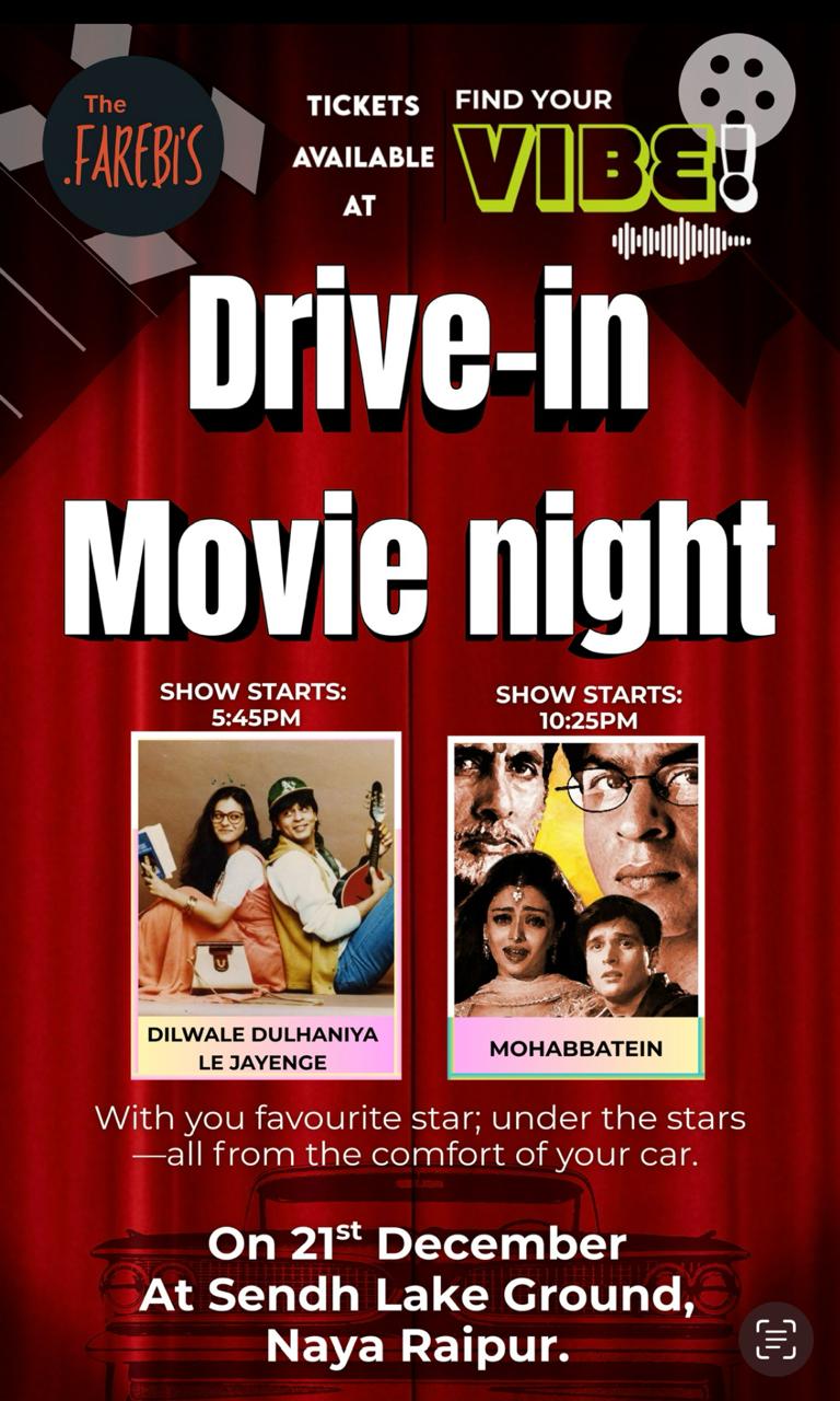 रायपुर। छत्तीसगढ़ में पहली बार एंटरटेनमेंट का एक नया विंडो ओपन होने जा रहा है। रायपुर के एमएसएमई the farebis ने नया रायपुर में ड्राइव इन मूवी का आयोजन करने का फैसला किया है। ये ड्राइव इन मूवी नया रायपुर में सेंध लेक ग्राउंड में होगा।