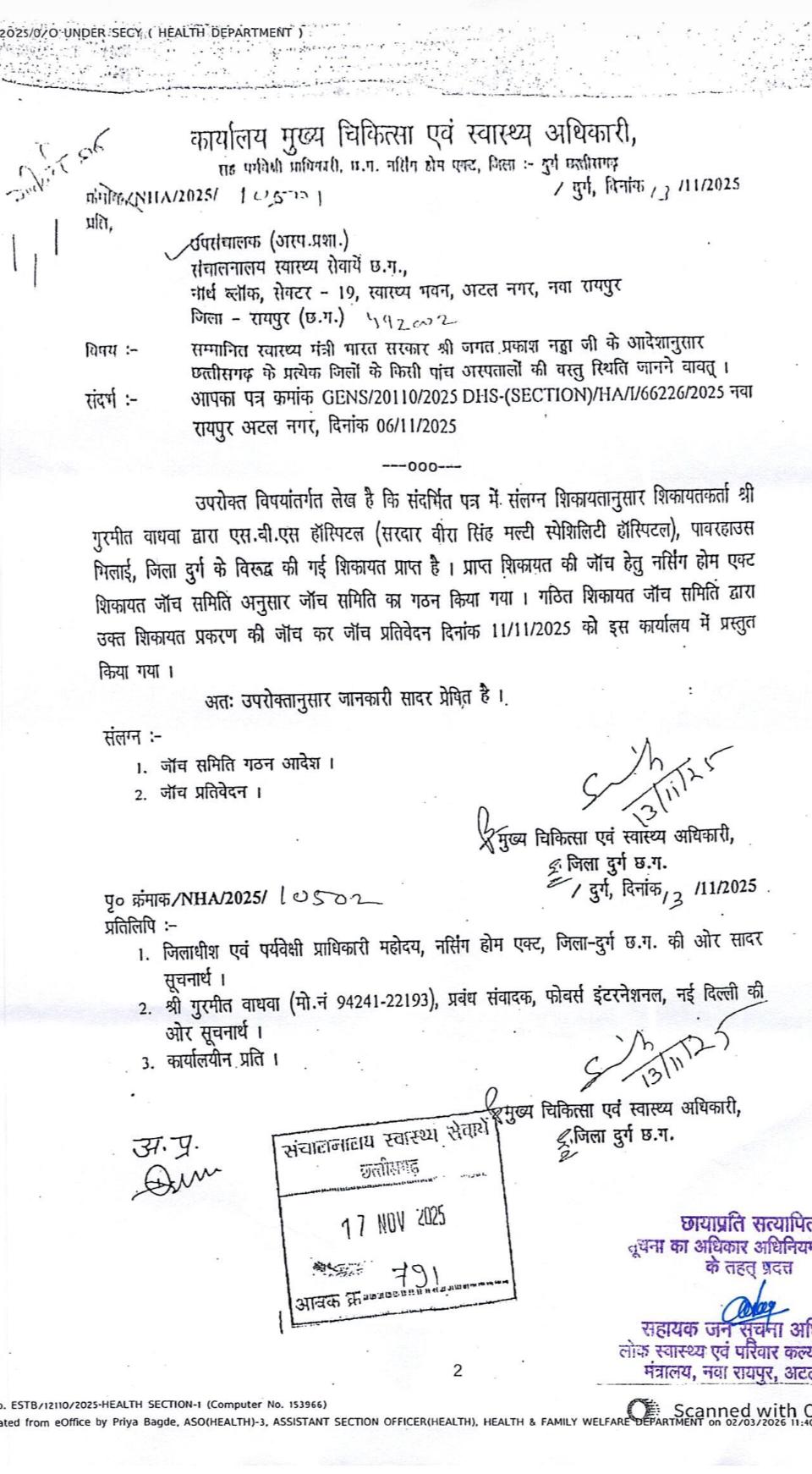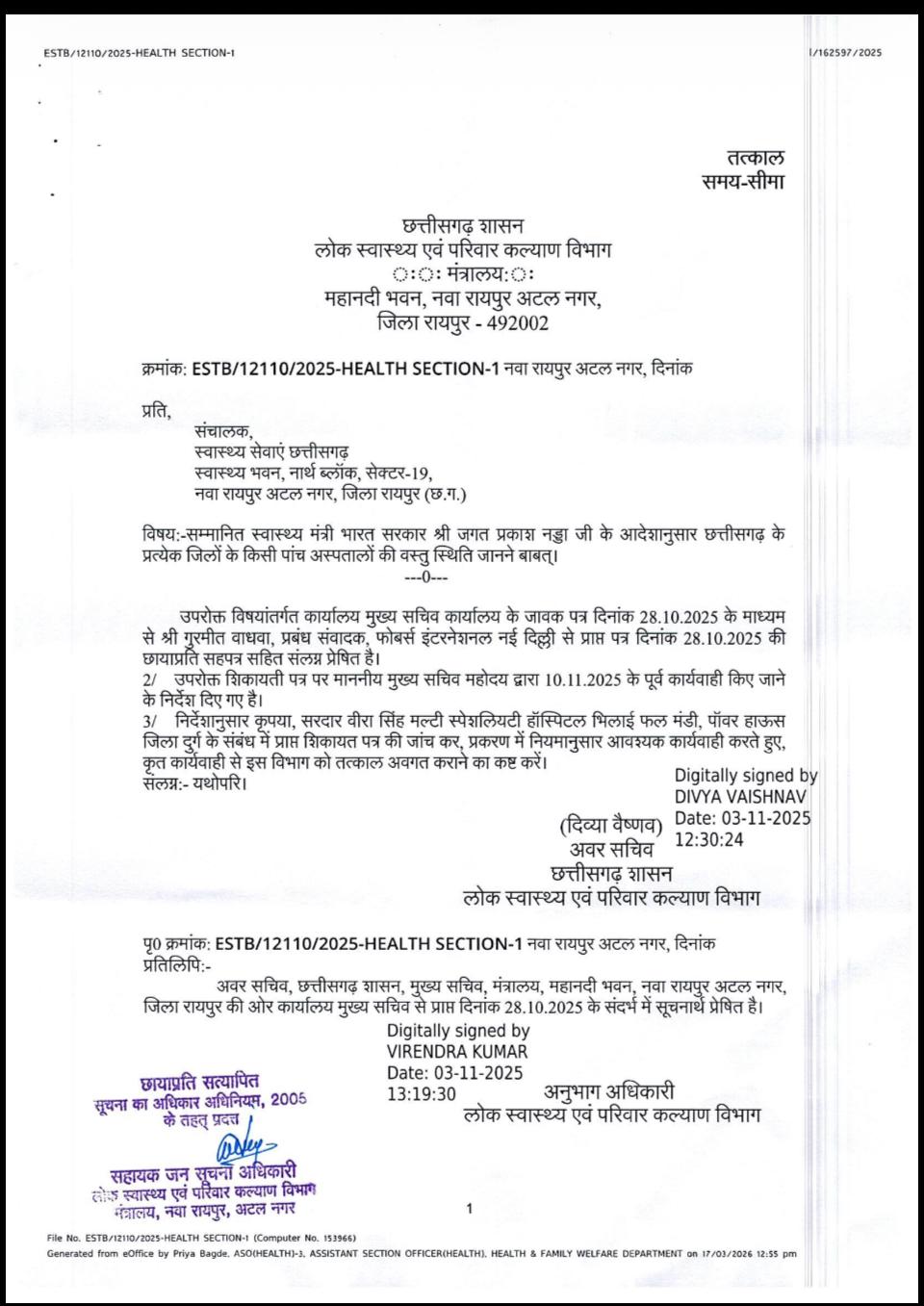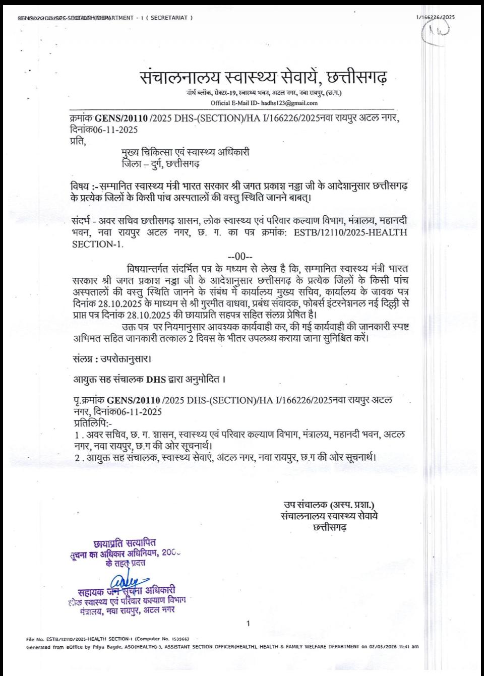 इस पत्र में उसने केंद्रीय स्वास्थ्य मंत्री जेपी नड्डा के नाम का हवाला देते हुए दावा किया कि उसे छत्तीसगढ़ के अस्पतालों की जांच का अधिकार मिला है।