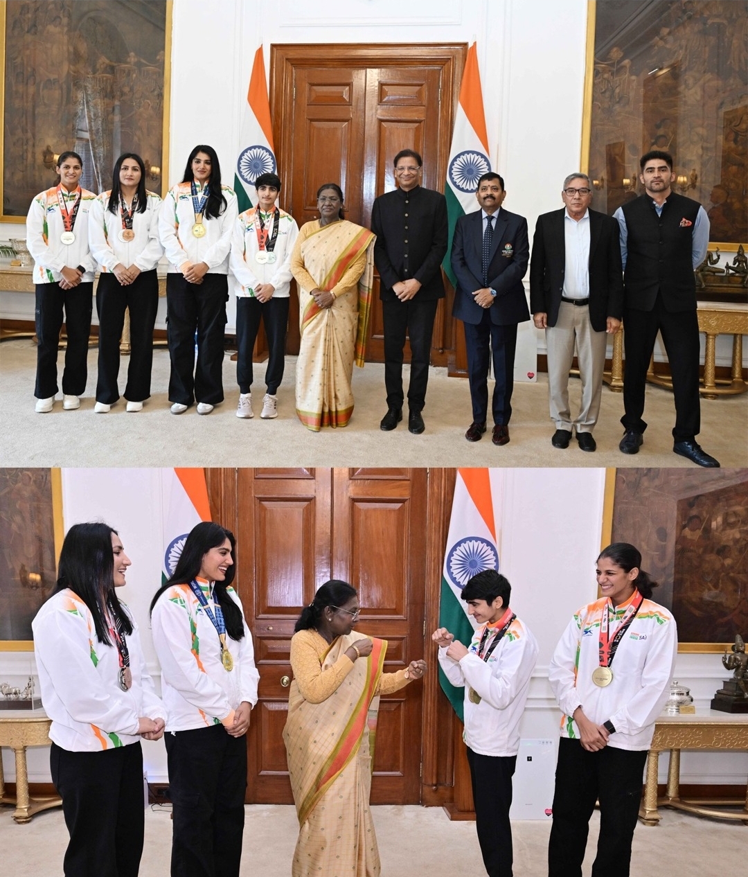 10 दिसंबर, 2025 को राष्ट्रपति भवन में राष्ट्रपति द्रौपदी मुर्मु ने इन चारों महिला मुक्केबाज़ों से मुलाकात की। राष्ट्रपति ने उन्हें बधाई दी और कहा कि उनका प्रदर्शन देश के लिए प्रेरणा का स्रोत है। यह मुलाकात न केवल उनकी उपलब्धियों को सम्मानित करने का अवसर थी, बल्कि यह युवा पीढ़ी के लिए भी प्रेरक संदेश देती है कि मेहनत और समर्पण से बड़ी उपलब्धियां हासिल की जा सकती हैं।