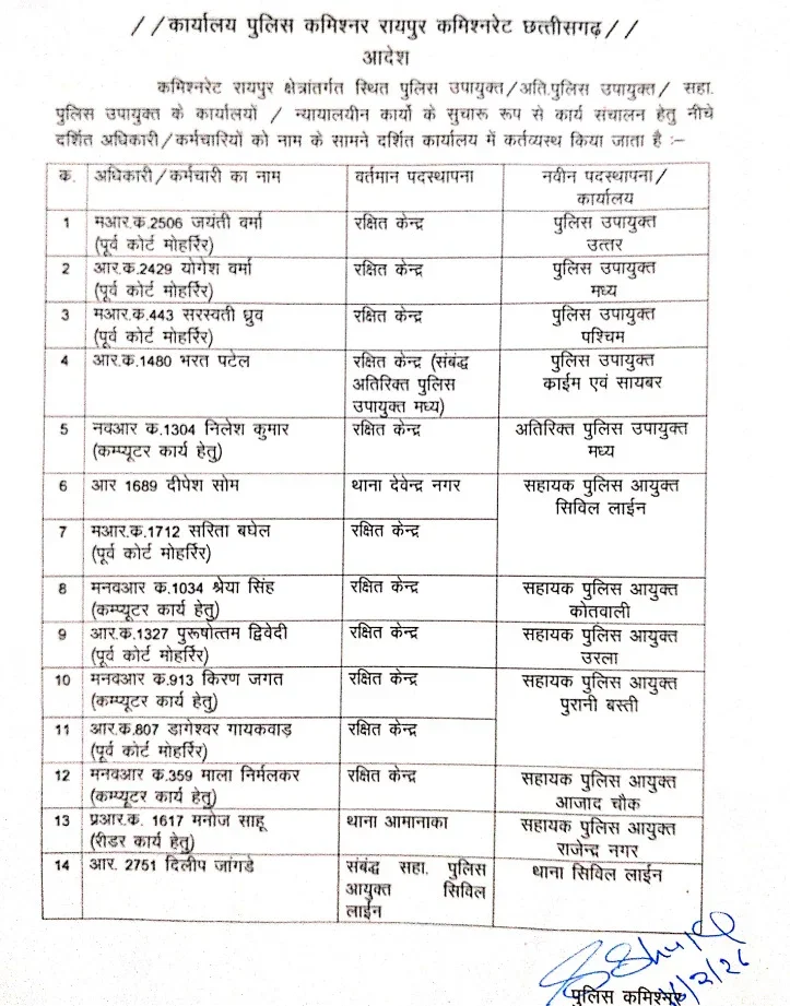 chhattisgarh-raipur-police-transfer-posting-order